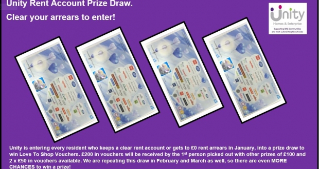 At the end of each month of January, February and March we will enter all clear rent account balances achieved that month into a draw. The winners for each month will be picked at random and if you are successful you will be contacted by your Income Management Officer. All prizes are in vouchers and will be sent out to you by registered post.